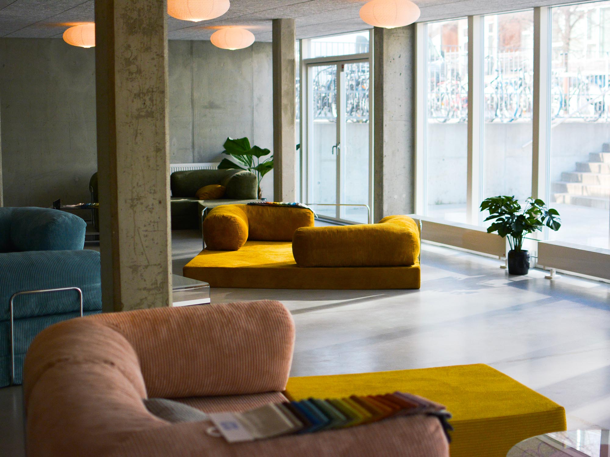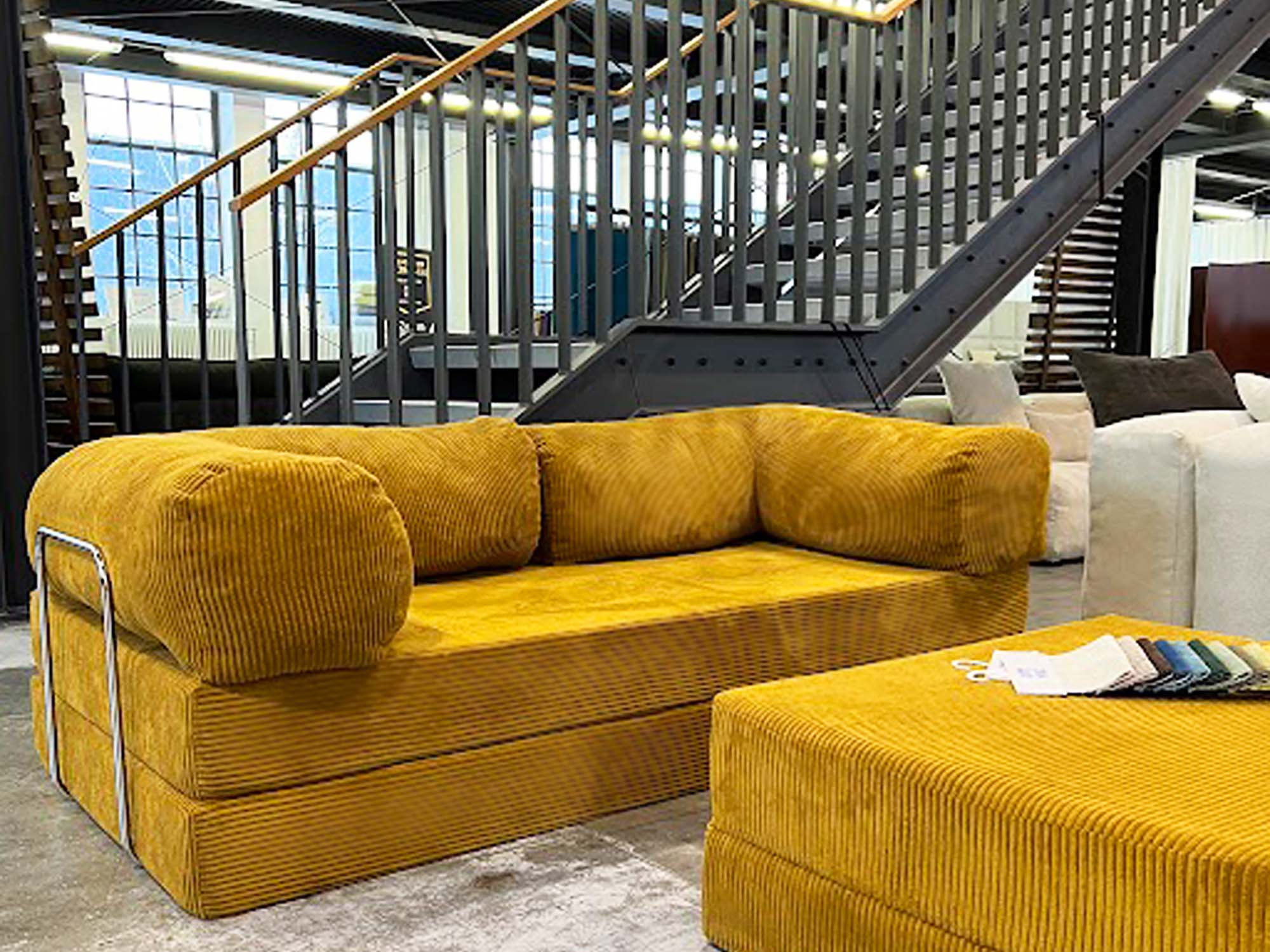 Welcome to our own showroom! Here, you will find our entire collection displayed, allowing you to try out our furniture at your own pace. We have large color samples in every available shade, and you can take smaller samples home with you. Our wonderful team will be there to guide you and answer any questions you may have.